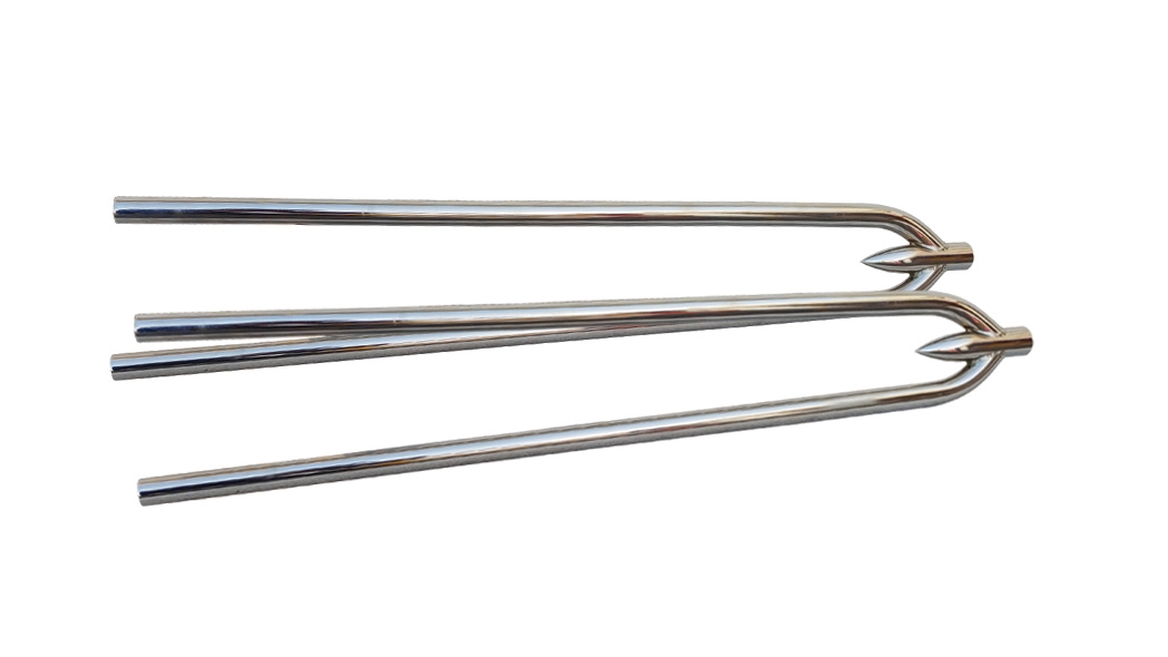 Our hairpins are made 100% in the USA from 304 stainless steel and come beautifully polished and all TIG welded. They feature a longer stub at the back than cheaper alternatives to provide further adjustment and less threads showing on the tie rod end. Bottom bar is 1/2″ longer to accommodate the axle being laid back while keeping the hairpin straight with even amounts of thread on the adjuster or clevis.